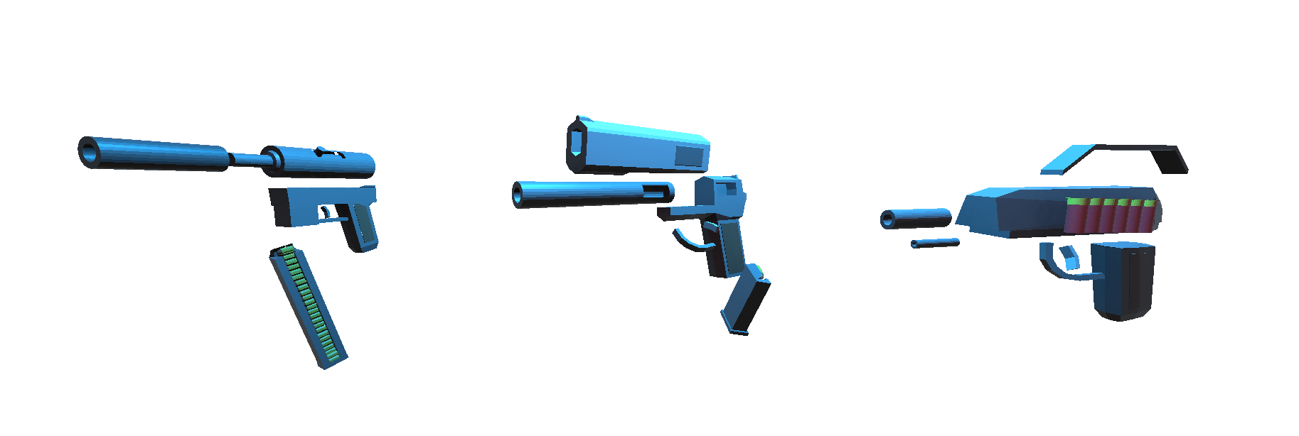 Unlock and wield three distinct weapons: pistol, shotgun, and SMG.